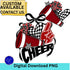 Bring the spirit to life with this Cheer Front & Back Digital PNG Design featuring bold red and black megaphone, pom poms, foam finger, and checkered accents. Perfect for cheerleading shirts, game day outfits, and team spirit wear.